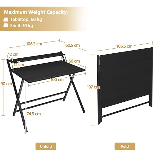 Yaheetech Foldable Desk with Monitor Stand,100 cm Computer Desk for Small Spaces...