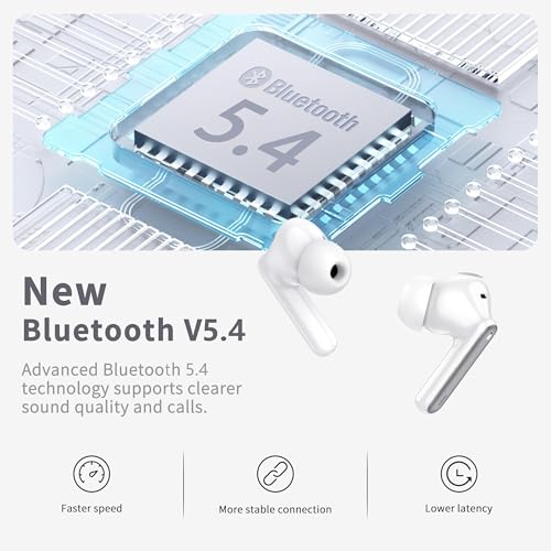 - 2025 Innovative Bluetooth 5.4 Technology & Auto Pairing: The advanced Bluetooth 5.4 technology provides a faster, more stable connection for the wireless earbuds, syncs audio and video without latency. With a range of up to 50 feet, whether you are at home, in the office, or on the road, you don't have to worry about disconnection. After the first pairing, simply remove both bluetooth headphones from the charging case to connect automatically. Rid of cord, enjoy true wireless.